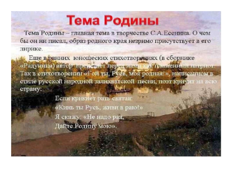 Презентация, доклад на тему Урок литературного чтения в 3 классе школа 21 века на тему: С.Есенин Стихи о Родине.