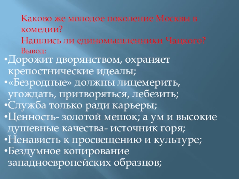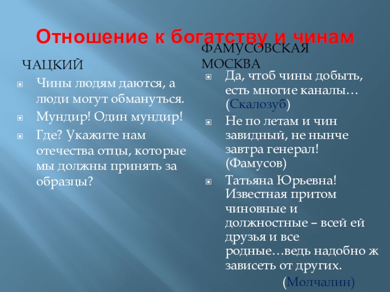 И награжденья брать весело пожить (Молчалин)