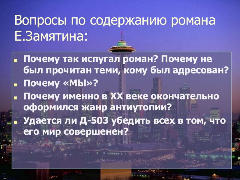/на примере романа Е.ЗАМЯТИНА «МЫ»/