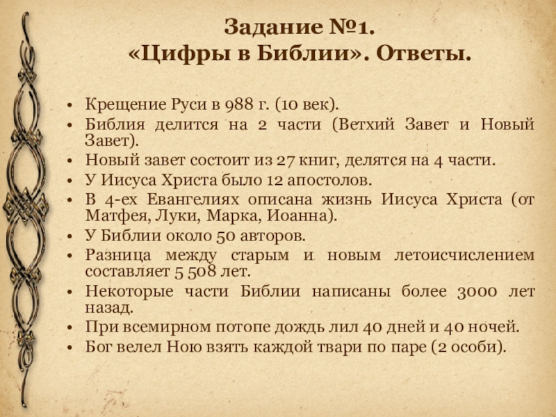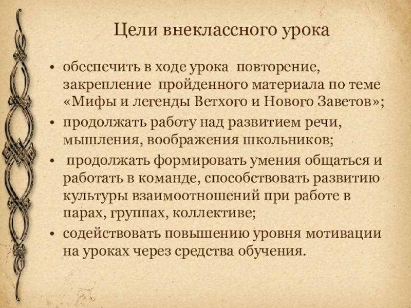 теме «Мифы и легенды Ветхого и Нового Заветов»;