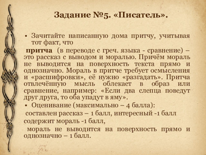 Зачитайте написанную дома притчу, учитывая тот факт, что