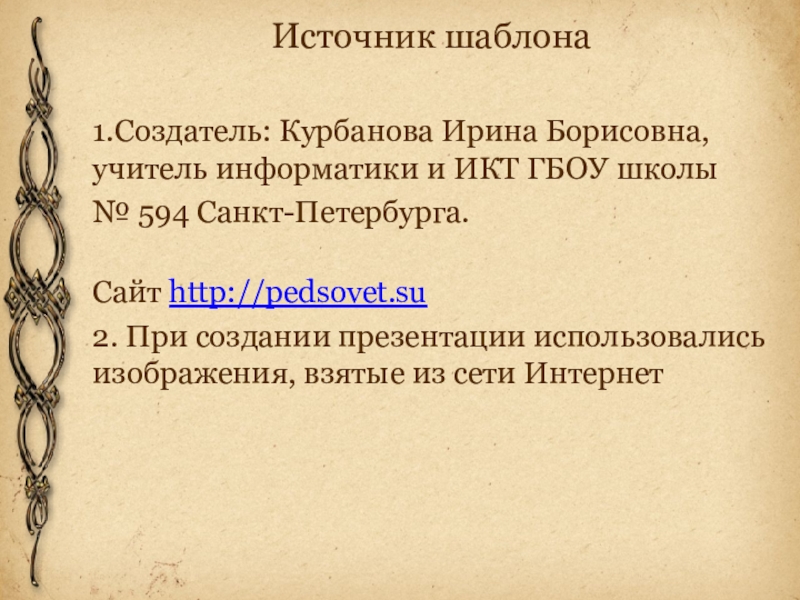 1.Создатель: Курбанова Ирина Борисовна, учитель информатики и ИКТ ГБОУ школы