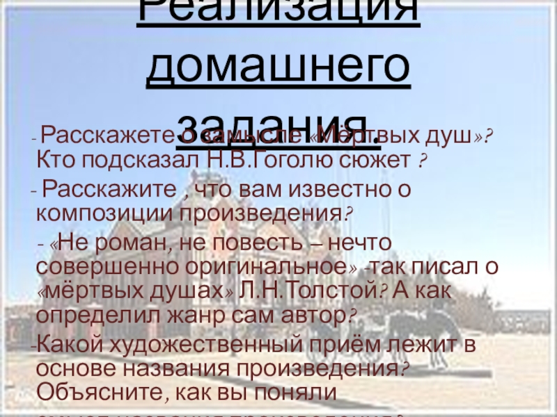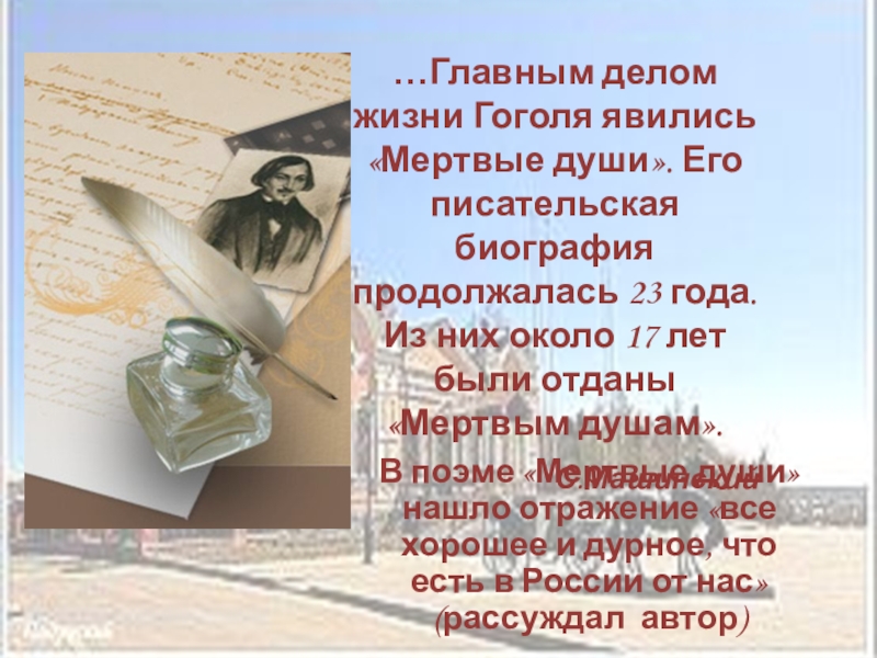 В поэме «Мертвые души»нашло отражение «все хорошее и дурное, что есть в России от нас» (рассуждал автор)