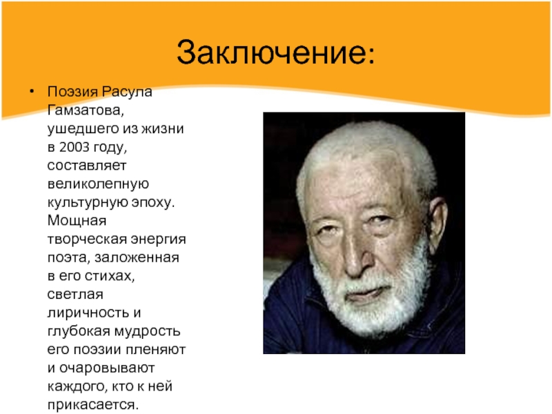 Слайд 3Расул Гамзатов начал писать стихи, когда ему было девять лет. Потом