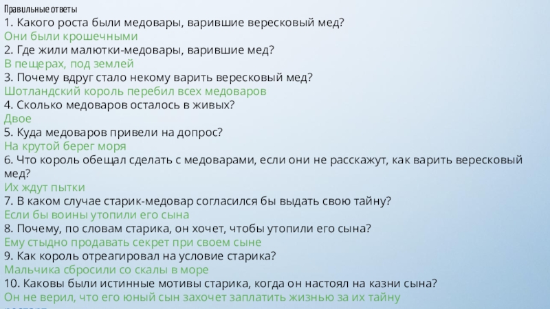 Слайд 181.Какого роста были медовары, варившие вересковый мед?
