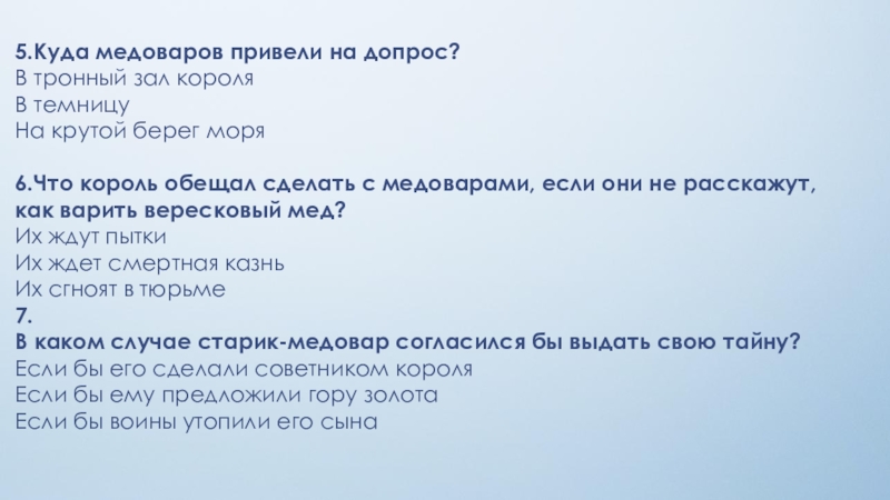 6.Что король обещал сделать с медоварами, если они не расскажут, как варить вересковый мед?