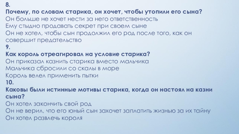 8. Почему, по словам старика, он хочет, чтобы утопили его сына?