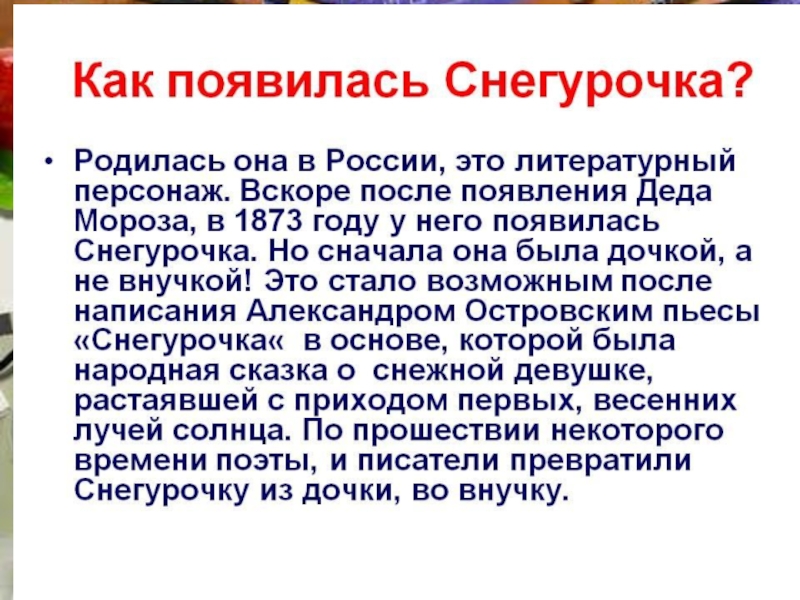 Презентация, доклад на тему В.И. Даль - Девочка Снегурочка