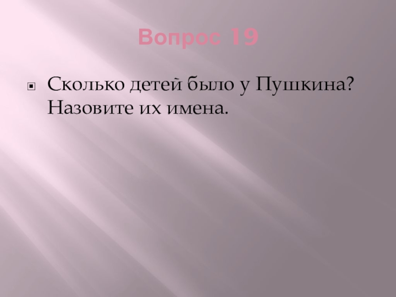 Вопрос 19Сколько детей было у Пушкина? Назовите их имена.