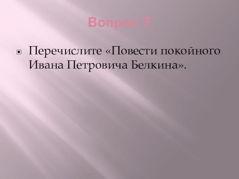 Вопрос 7Перечислите «Повести покойного Ивана Петровича Белкина».