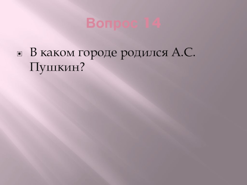 Вопрос 14В каком городе родился А.С. Пушкин?