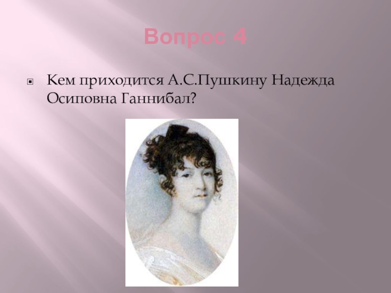 Вопрос 4Кем приходится А.С.Пушкину Надежда Осиповна Ганнибал?