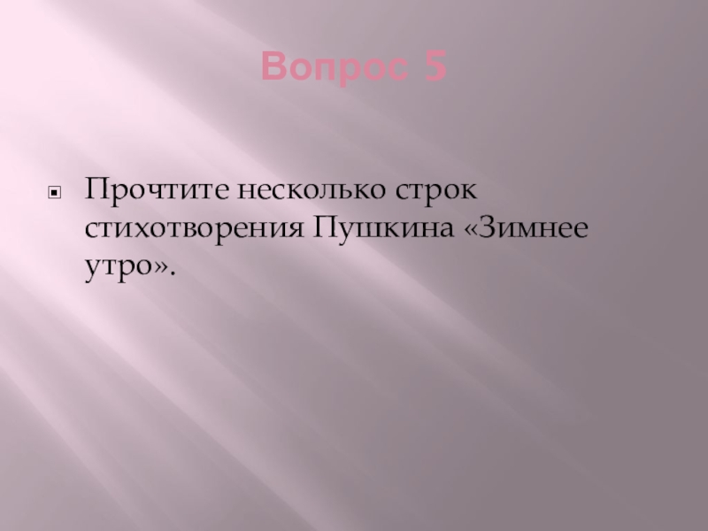 Вопрос 5Прочтите несколько строк стихотворения Пушкина «Зимнее утро».