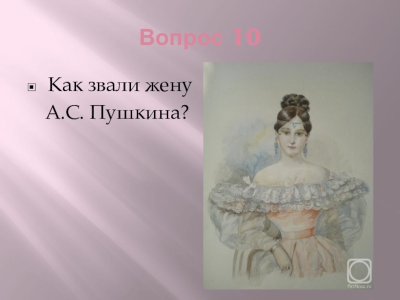Вопрос 10Как звали жену  А.С. Пушкина?