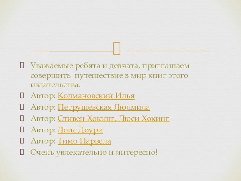 Слайд 2Уважаемые ребята и девчата, приглашаем совершить путешествие в мир книг этого