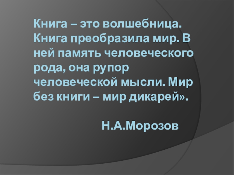 Слайд 2Книга – это волшебница. Книга преобразила мир. В ней память человеческого