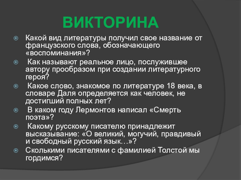 Слайд 8ВИКТОРИНА