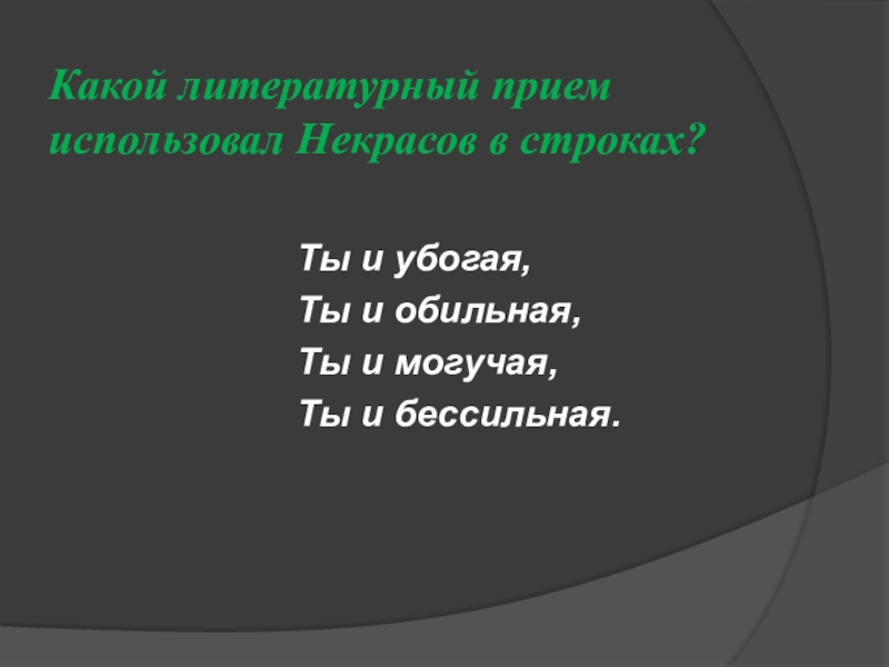 Слайд 5Какой литературный прием использовал Некрасов в строках?