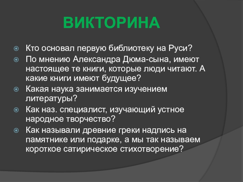 Слайд 4ВИКТОРИНА
