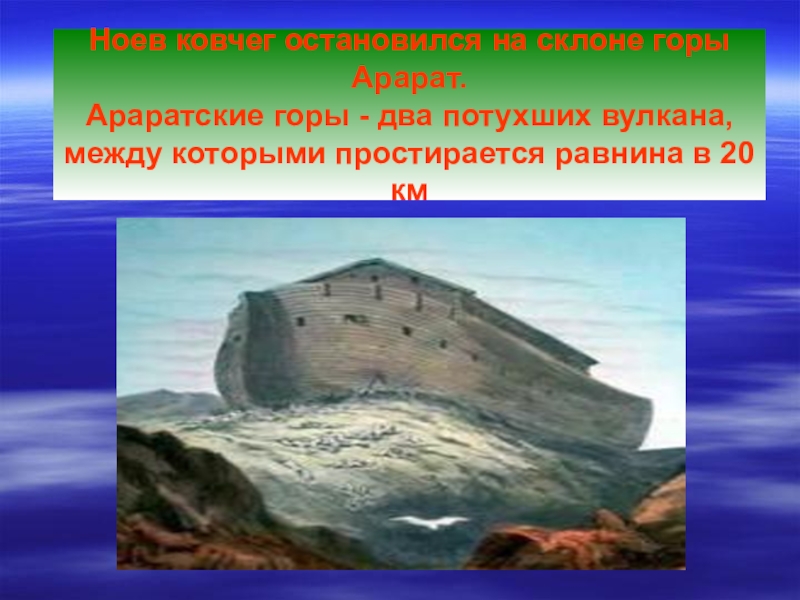 Слайд 20Ноев ковчег остановился на склоне горы Арарат.