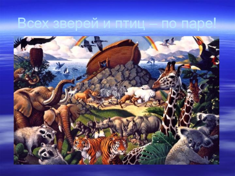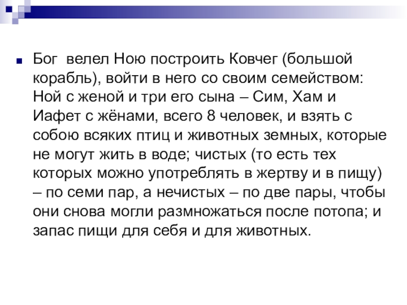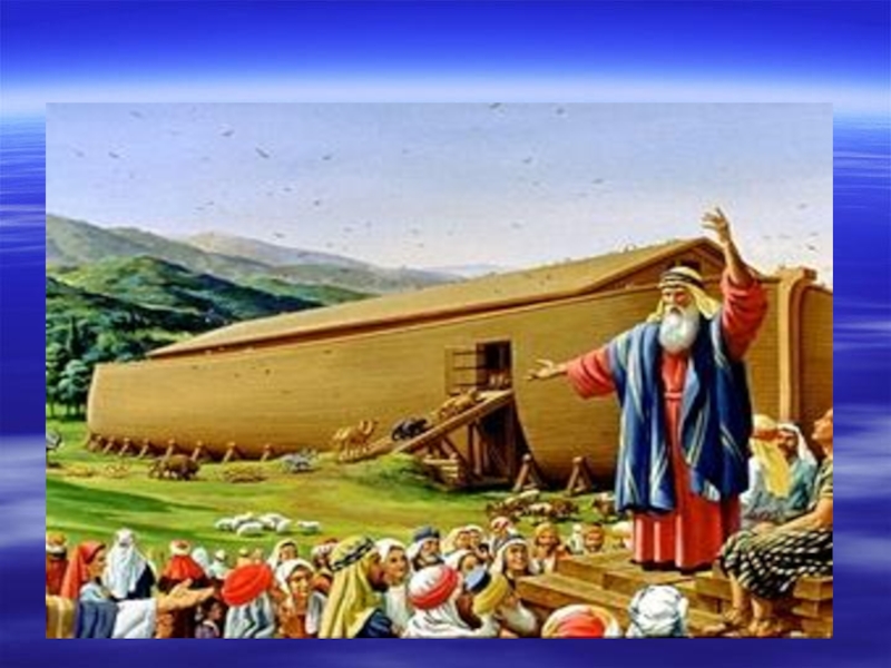 Слайд 10Бог велел Ною построить Ковчег (большой корабль), войти в него со