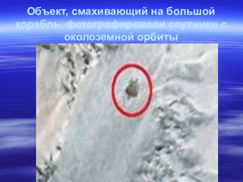 Слайд 26Объект, смахивающий на большой корабль, фотографировали спутники с околоземной орбиты