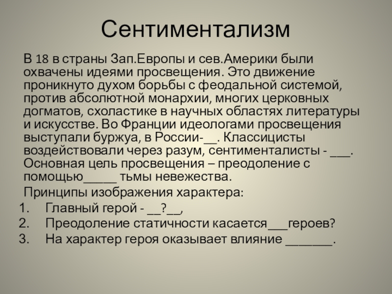 Представители другого лагеря опирались на достижения сентиментальной литературы, и прежде всего Н.М. Карамзина.