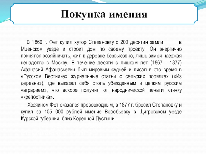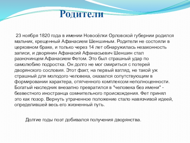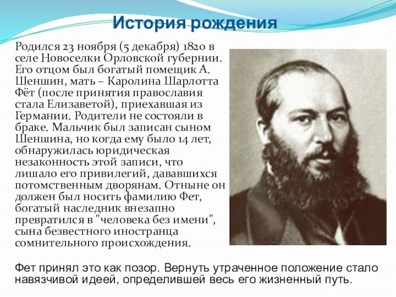 Фет принял это как позор. Вернуть утраченное положение стало навязчивой идеей, определившей весь его жизненный путь.