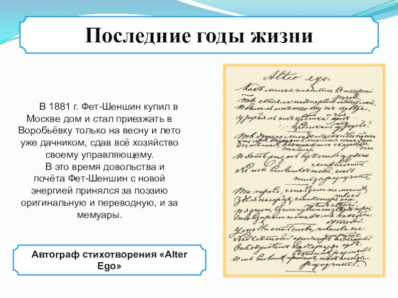 Автограф стихотворения «Alter Ego»