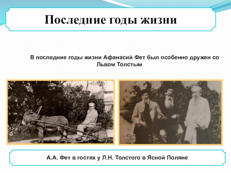 А.А. Фет в гостях у Л.Н. Толстого в Ясной Поляне
