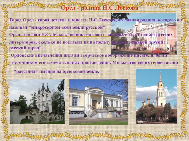 Орел, отмечал Н.С.Лесков,"вспоил на своих