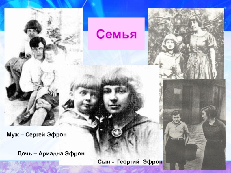 Семья Муж – Сергей ЭфронДочь – Ариадна ЭфронСын - Георгий Эфрон