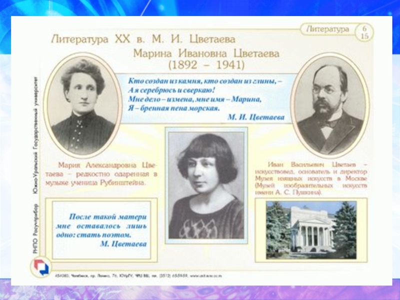 Презентация, доклад на тему Жизнь и творчество Марины Цветаевой