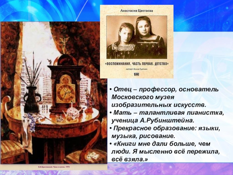 Слайд 5 Отец – профессор, основатель Московского музея изобразительных искусств.