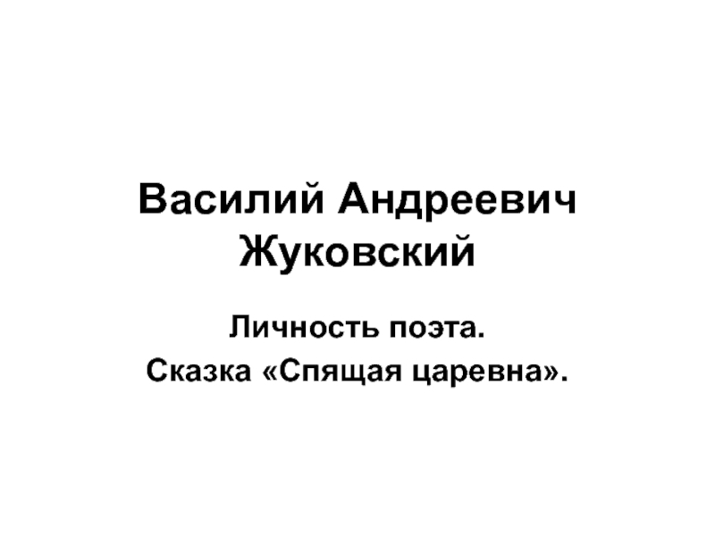 Василий Андреевич Жуковский Личность поэта. Сказка «Спящая царевна».