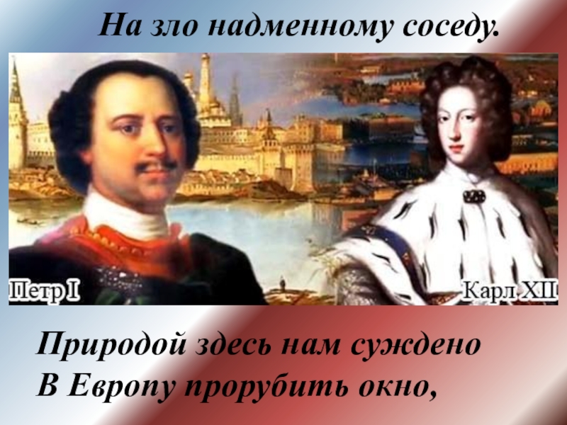 На зло надменному соседу.Природой здесь нам суждено В Европу прорубить окно,