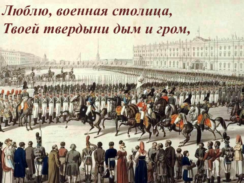 Слайд 54Люблю, военная столица, Твоей твердыни дым и гром,