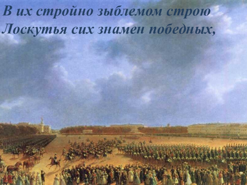 Слайд 52В их стройно зыблемом строю Лоскутья сих знамен победных,