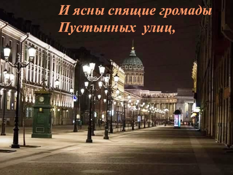 Слайд 38И ясны спящие громады Пустынных улиц,