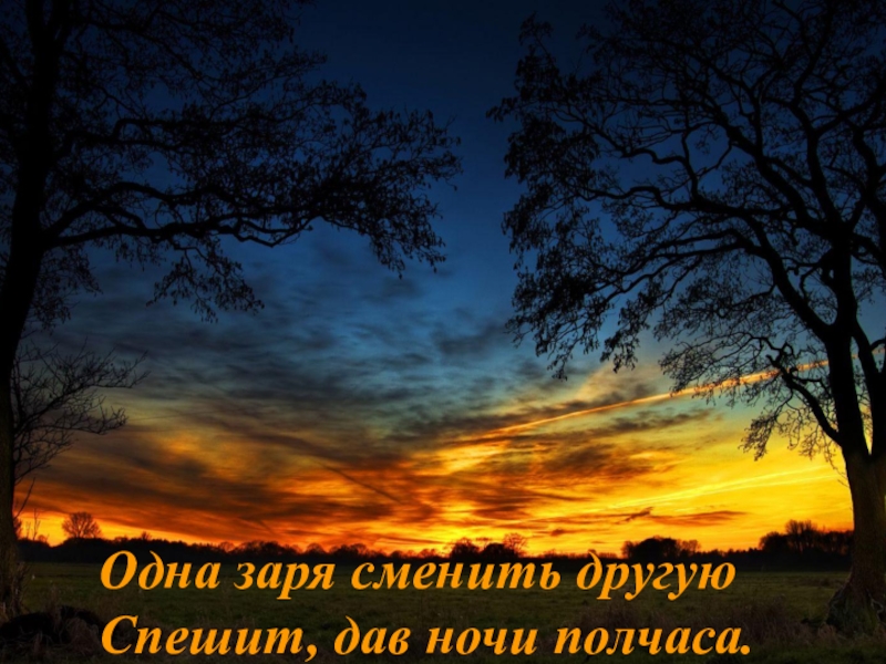 Слайд 41Одна заря сменить другую Спешит, дав ночи полчаса.