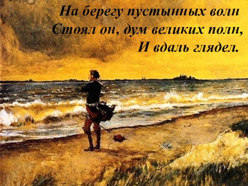 Слайд 1На берегу пустынных волн Стоял он, дум великих полн, И вдаль глядел.