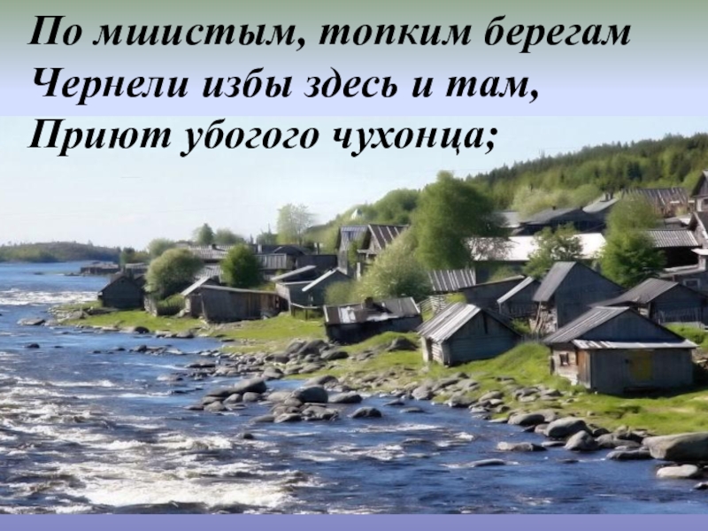 Слайд 4По мшистым, топким берегам Чернели избы здесь и там, Приют убогого чухонца;
