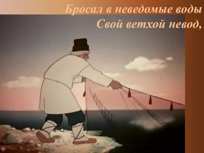 Слайд 20Бросал в неведомые воды Свой ветхой невод,