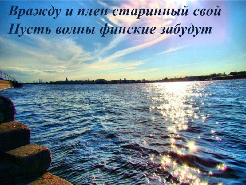 Слайд 63Вражду и плен старинный свой Пусть волны финские забудут