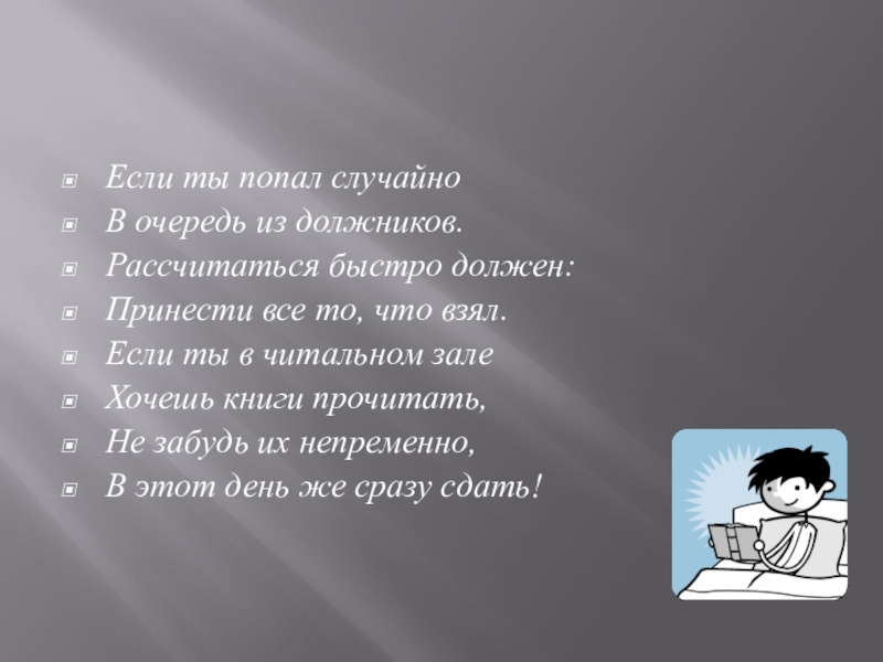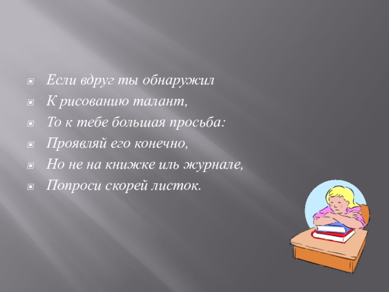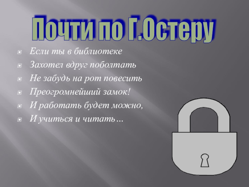 Это сайт презентаций, где можно хранить и обмениваться своими презентациями, докладами, проектами, шаблонами в формате PowerPoint с другими пользователями. Мы помогаем школьникам, студентам, учителям, преподавателям хранить и обмениваться учебными материалами.