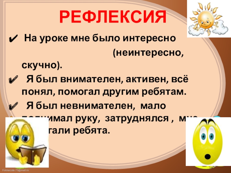 РЕФЛЕКСИЯ На уроке мне было интересно