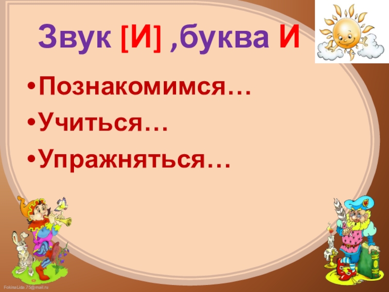 Звук [И] ,буква И Познакомимся…Учиться…Упражняться…