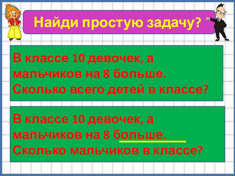 В классе 10 девочек, а мальчиков на 8 больше. Сколько мальчиков в классе?