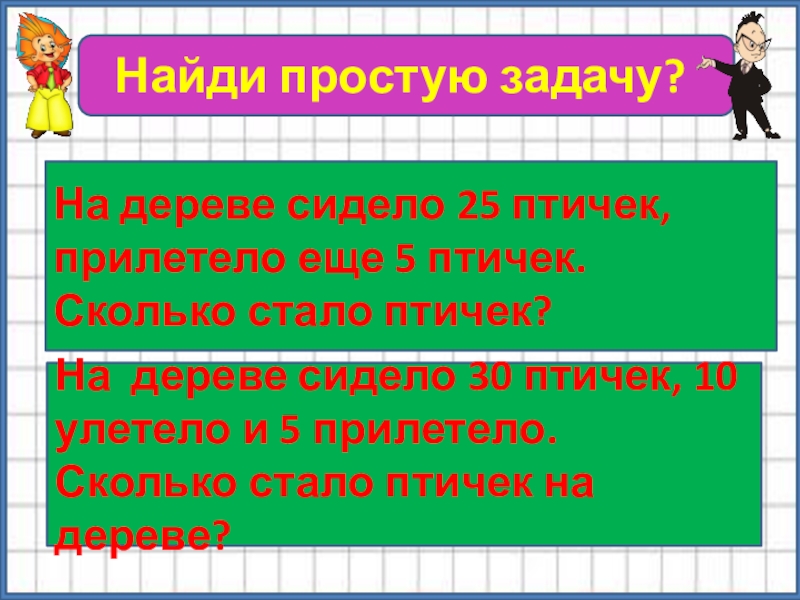 На дереве сидело 25 птичек, прилетело еще 5 птичек. Сколько стало птичек?