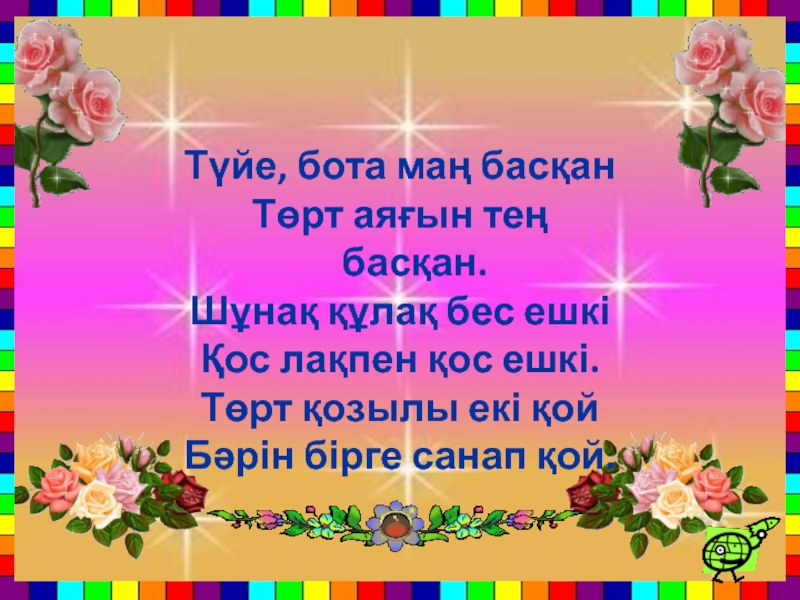 Түйеқұс таразыда бір аяғымен тұрғанда 12 кг. Тартады. Ал егер екі аяғымен тұрса, қанша тартады?